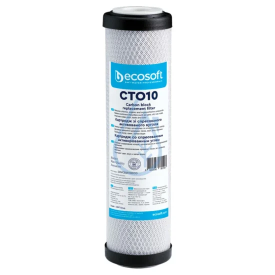 La cartouche charbon bloc 10 microns Ecosoft élimine chlore, métaux lourds et odeurs désagréables. Grâce à son charbon de noix de coco, elle améliore goût, couleur et qualité de l’eau, tout en protégeant vos appareils ménagers et osmoseurs.