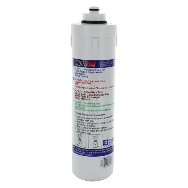 La cartouche charbon-KDF NLF Aquapro améliore la qualité de l’eau potable grâce à une filtration multicouche. Elle associe charbon actif de noix de coco et média KDF cuivre-zinc pour réduire chlore, odeurs, composés organiques volatils et certains métaux lourds. L’eau devient ainsi plus agréable à boire. Cette cartouche s’installe facilement dans un système de filtration sous évier et aide à limiter la prolifération bactérienne.