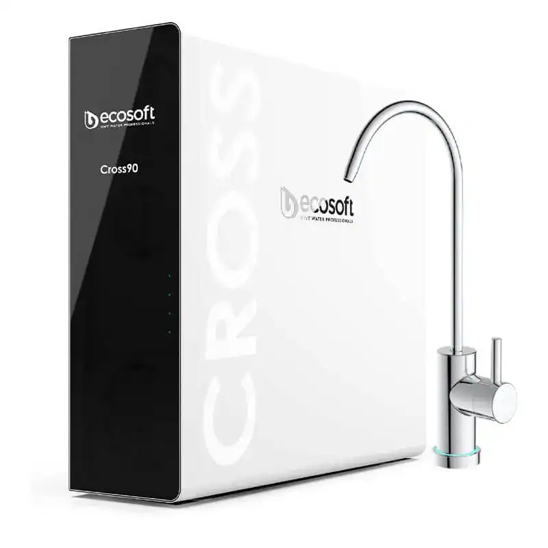 L’osmoseur Ecosoft CROSS 90 fournit une eau pure et saine en continu. Son système à débit direct élimine jusqu’à 99,8 % des contaminants et PFAS, offrant une filtration instantanée, performante et économe, certifiée NSF/ANSI 58-2022.