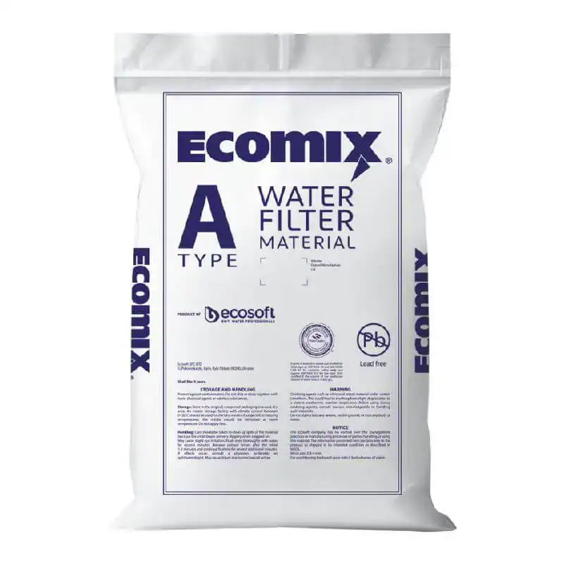 Le média filtrant ECOMIX® A 25 L combine 5 composants pour éliminer calcaire, fer, manganèse, ammonium et matières organiques. Stable, performant et certifié ACS, il garantit une eau claire, douce et constante toute l’année. Idéal pour puits et eaux difficiles.