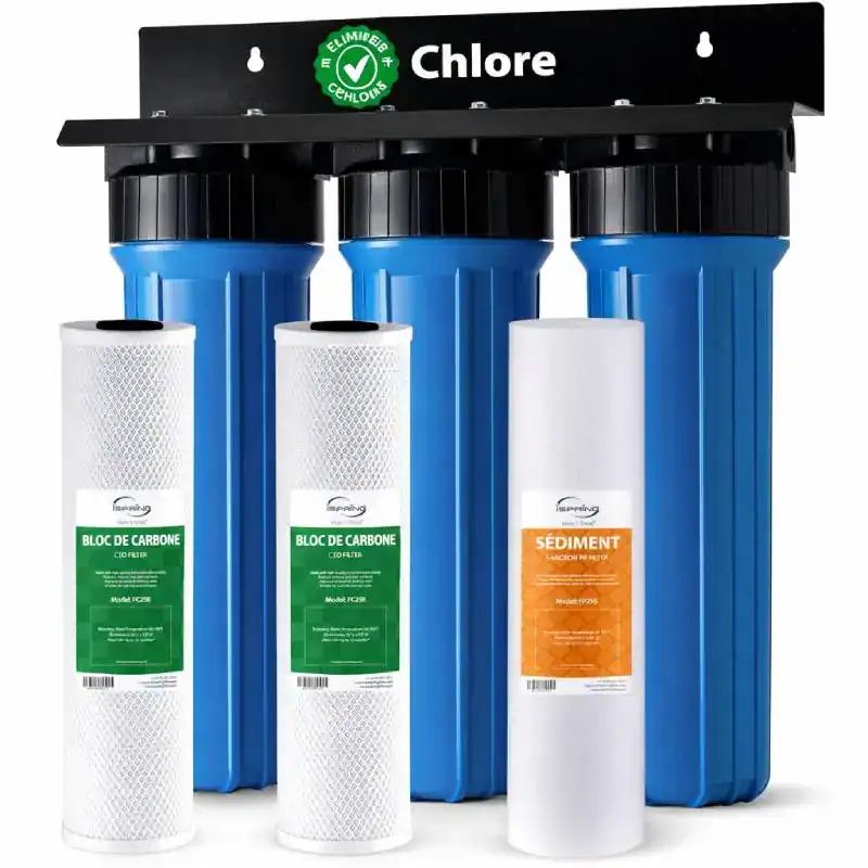 Station Big 20 Pouces Eau Maison 3 Étapes – Impuretés, double charbon actif – chlore